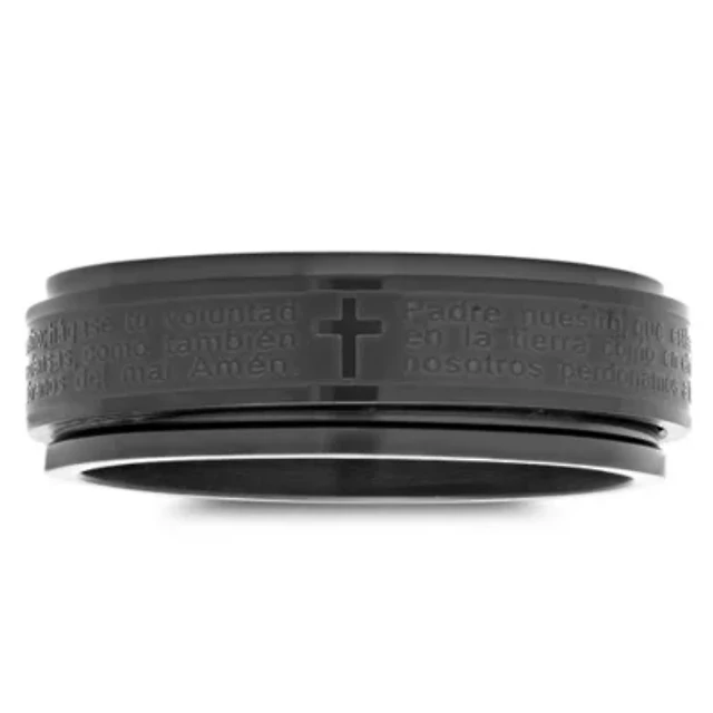 Men's black ip stainless steel padre nuestro prayer spinner ring