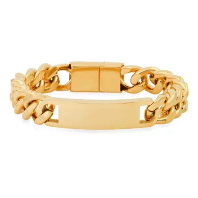 Men's 18k gold plated stainless steel cuban link chain id bracelet