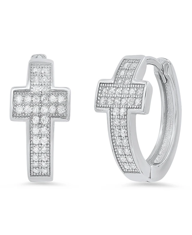Steeltime Women's Sterling Silver and Simulated Diamonds Cross Huggie Earrings