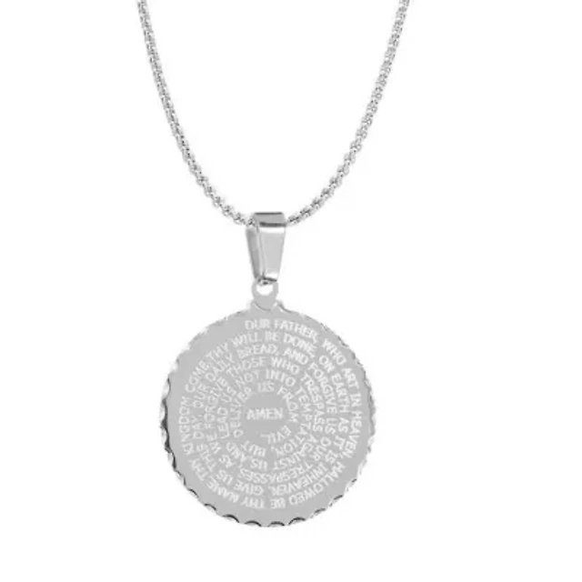 Men's black ip stainless steel and simulated diamonds "Our Father" prayer round pendant