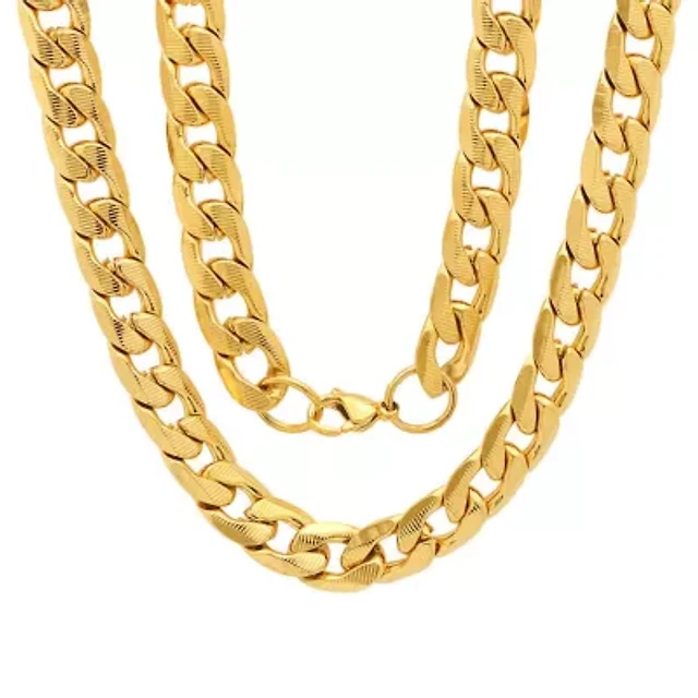 Men's 18k gold plated stainless steel cuban link chain necklace