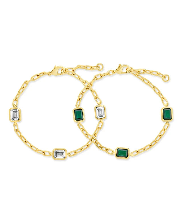 Sterling Forever Lennox Station Cubic Zirconia Chain Bracelet