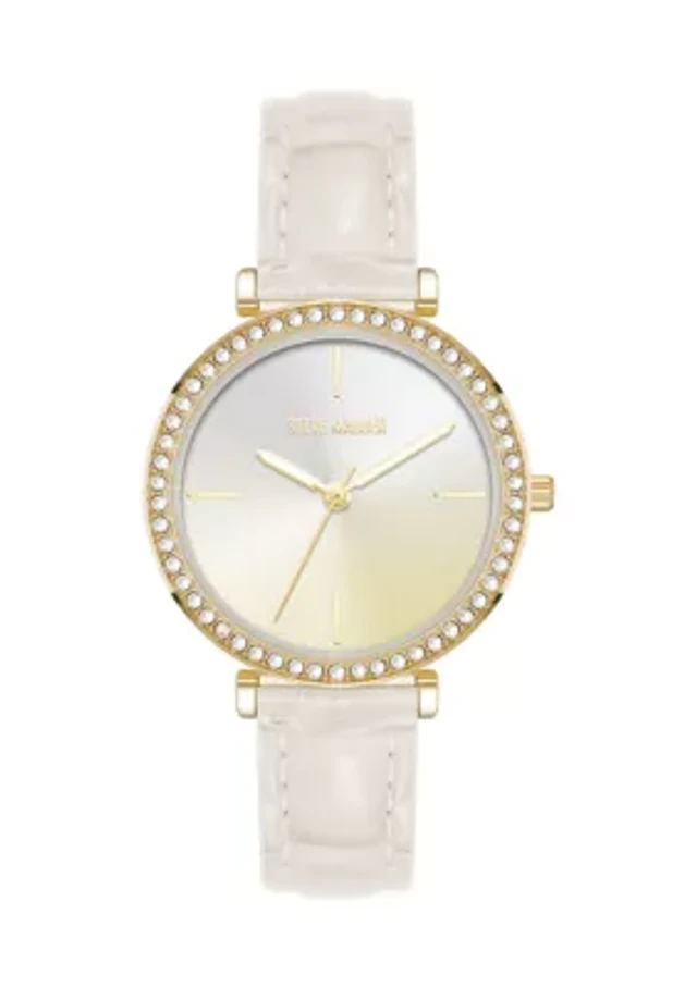 Contemporary White Faux Leather and Gold Tone Alloy Metal Watch