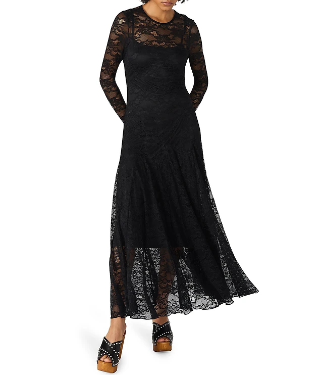 Steve Madden Long Sleeve Illusion Lace Maxi Dress