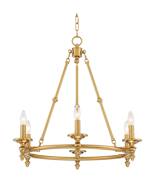 Stiffel Warm Antique Brass Wagon Wheel Chandelier 28" Wide Farmhouse Rustic 6-Light Fixture for Dining Room Living House Foyer Kitchen Island Ent