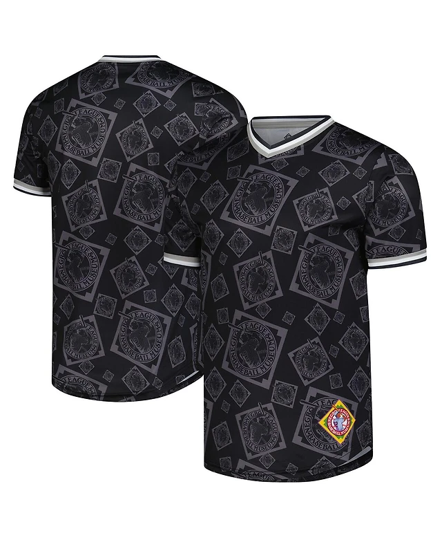 Stitches Men's Black Negro League Baseball Allover Print V-Neck Baseball Jersey
