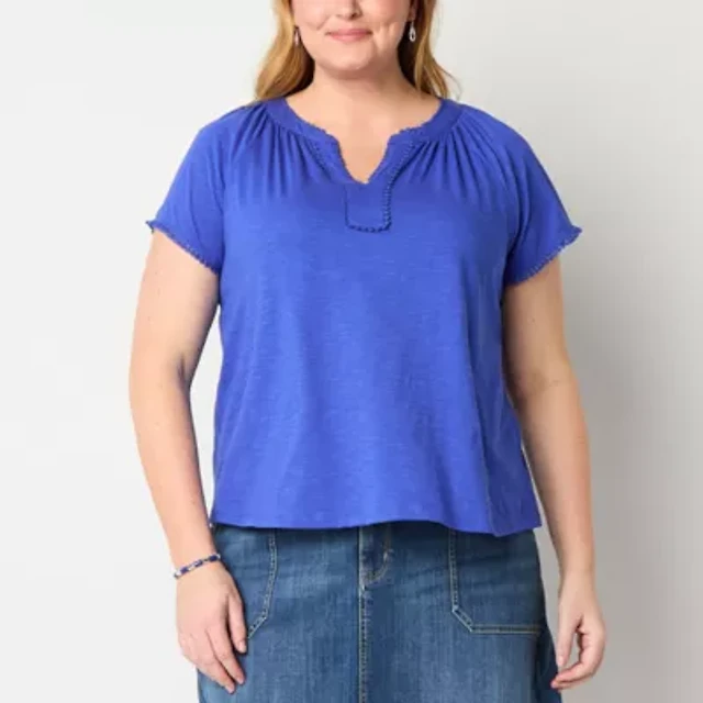 St. John's Bay Womens Crew Neck Short Sleeve Blouse