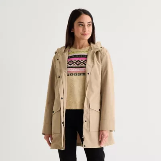 St. John's Bay Womens Hooded Lightweight Raincoat