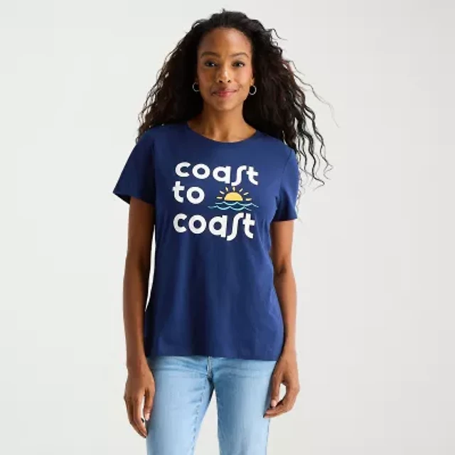 St. John's Bay Womens Tall Crew Neck Short Sleeve Regular Fit Graphic T-Shirt