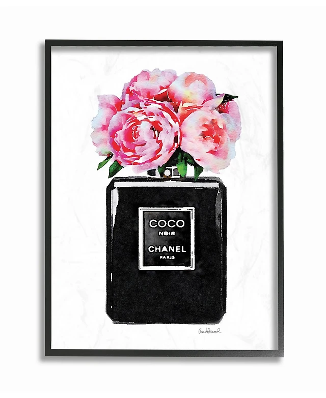 Stupell Industries Glam Perfume Bottle Flower Black Peony Pink Framed Giclee Art