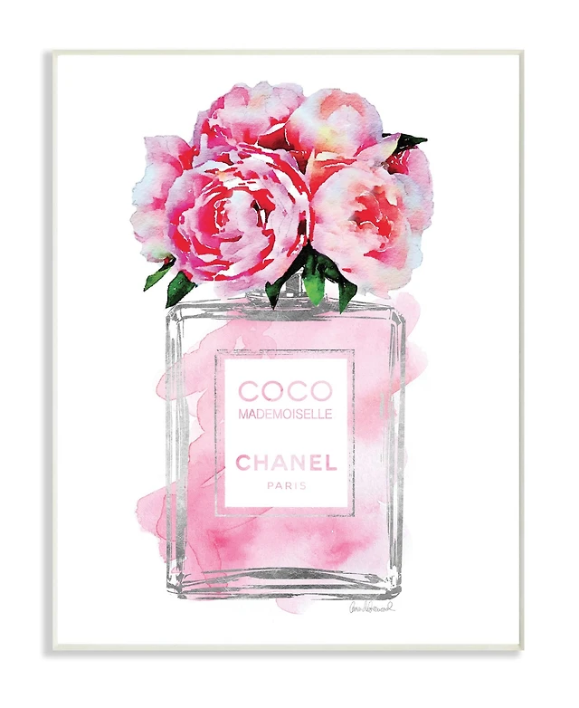 Stupell Industries Glam Perfume Bottle V2 Flower Silver Pink Peony Wall Plaque Art