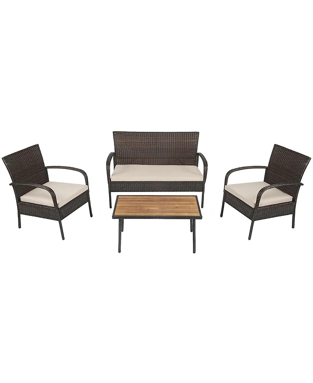 4 Piece Outdoor Acacia Wood Conversation Set with Soft Seat and Back Cushions-Gray