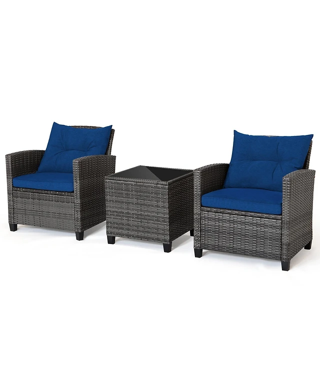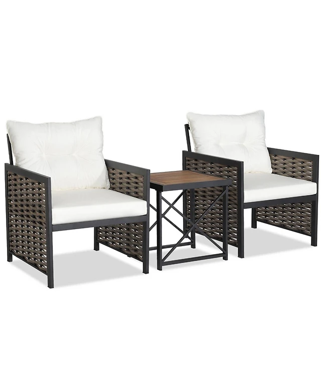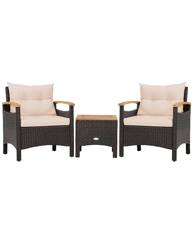 Sugift Wicker Patio Conversation Furniture Set with Removable Cushions and Table