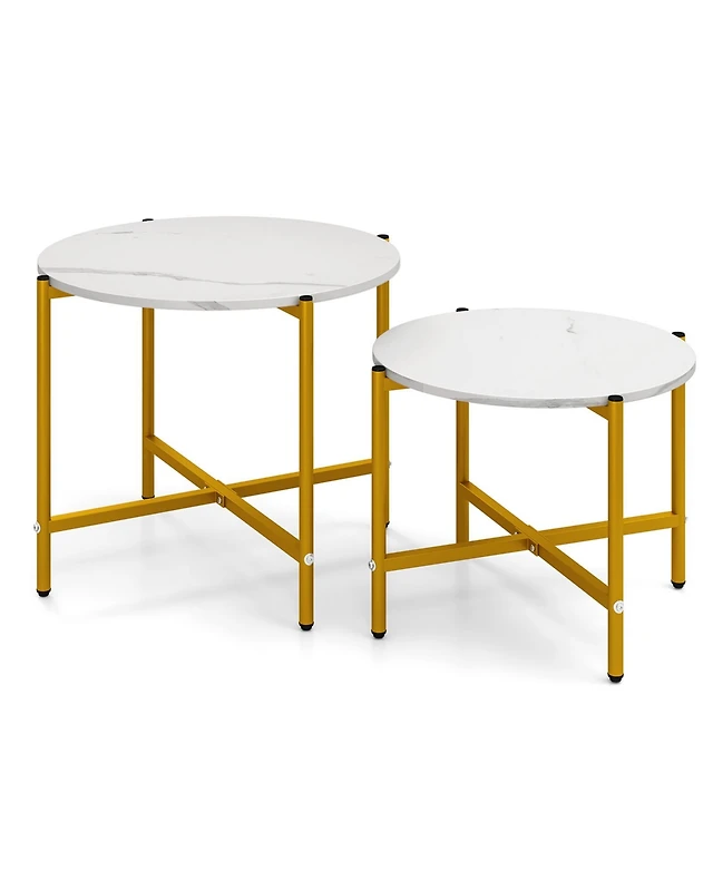 Sugift Round Coffee Table Set of Two with Metal Frame