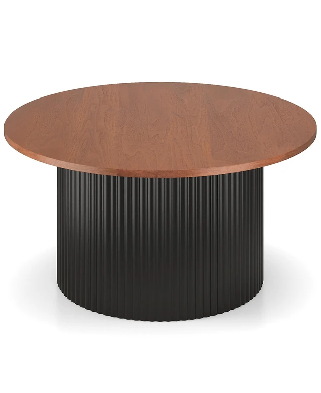 Sugift Round Coffee Table with Solid Wood Frame and Top