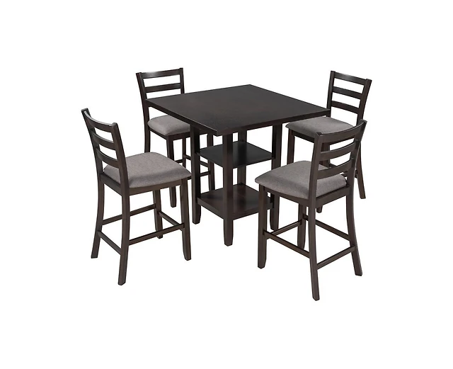 sumyeg Retro 5-Piece Dining Set with Bar Table and Chairs in Brown