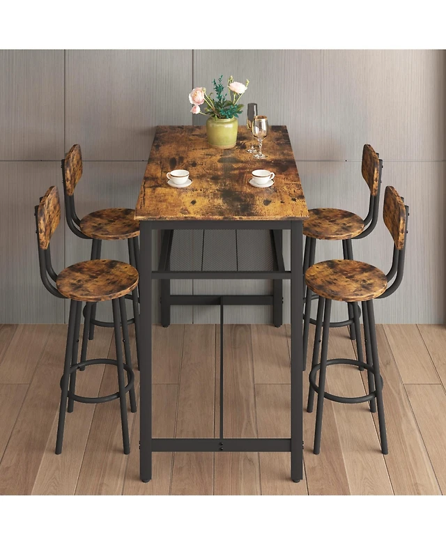 Casainc 5 Piece Metal and Wood Dining Table Set with 4 Chairs for Kitchen or Dining Room