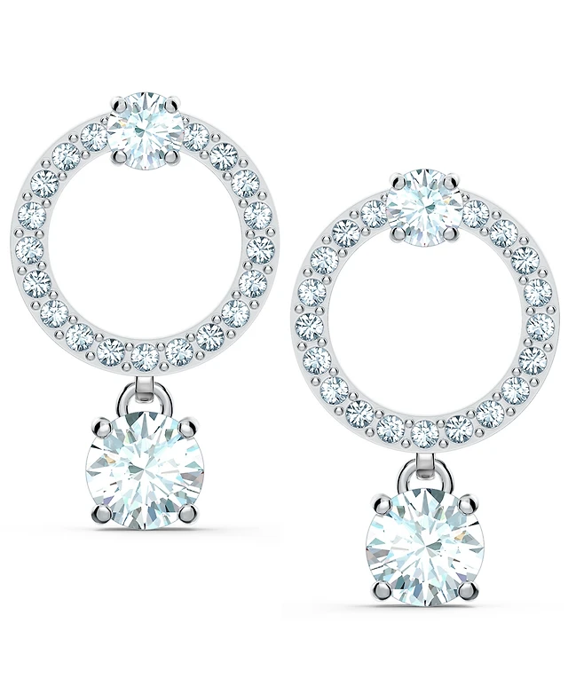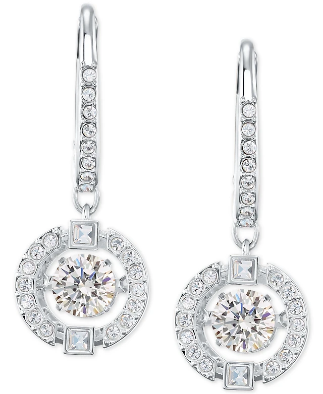 Swarovski Silver-Tone Crystal Circle & Charm Drop Earrings