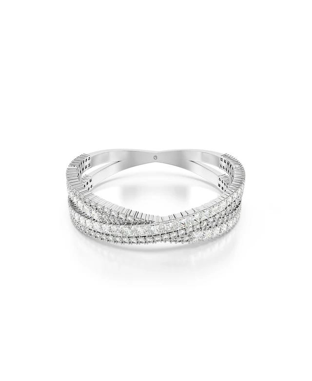 Swarovski Mixed Cuts Rhodium Plated Hyperbola Cocktail Ring
