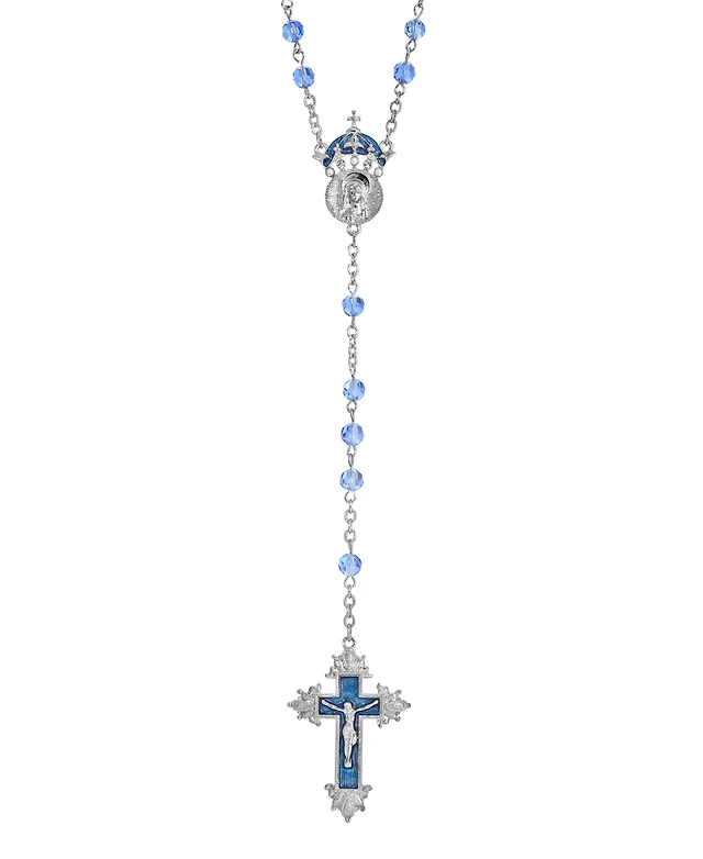 Silver-Tone Blue Beaded Mary Medallion Necklace with Eyeglass Holder