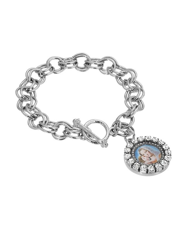 Silver-Tone Toggle Mary and Child Charm Bracelet
