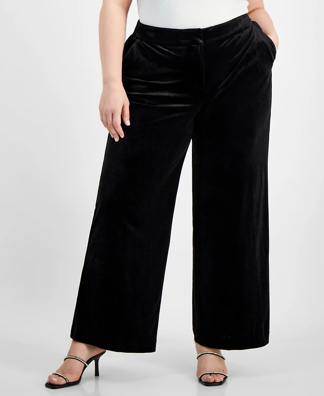 Tahari Asl Plus Size Velvet Mid-Rise Wide-Leg Pants