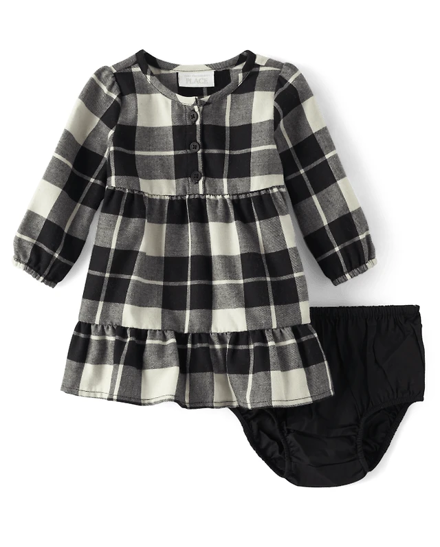 Girls Plaid Twill Smocked Tiered Skirt