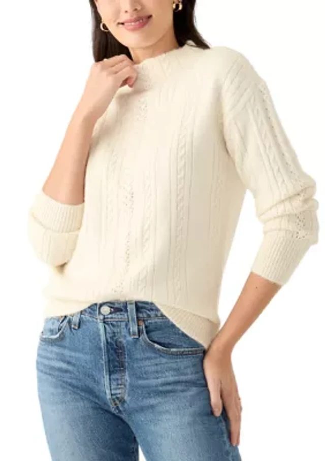 Women's Mixed Media Flutter Sleeve Knit Top