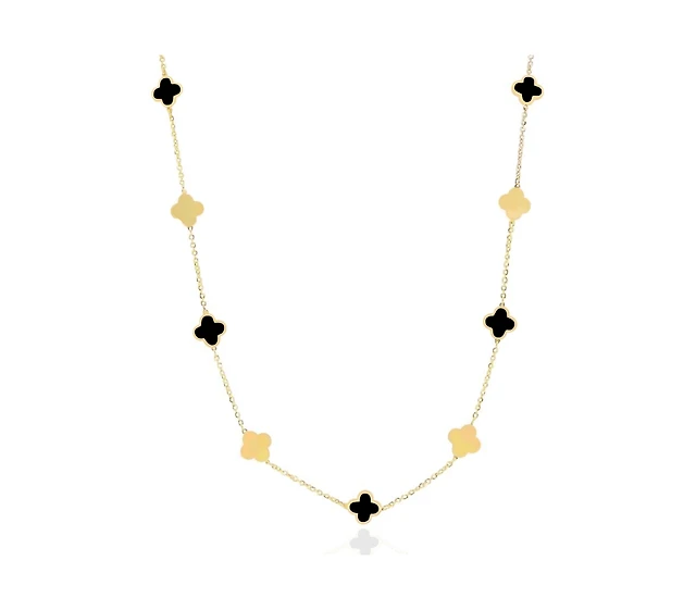The Lovery Onyx Clover Necklace 14K White Gold