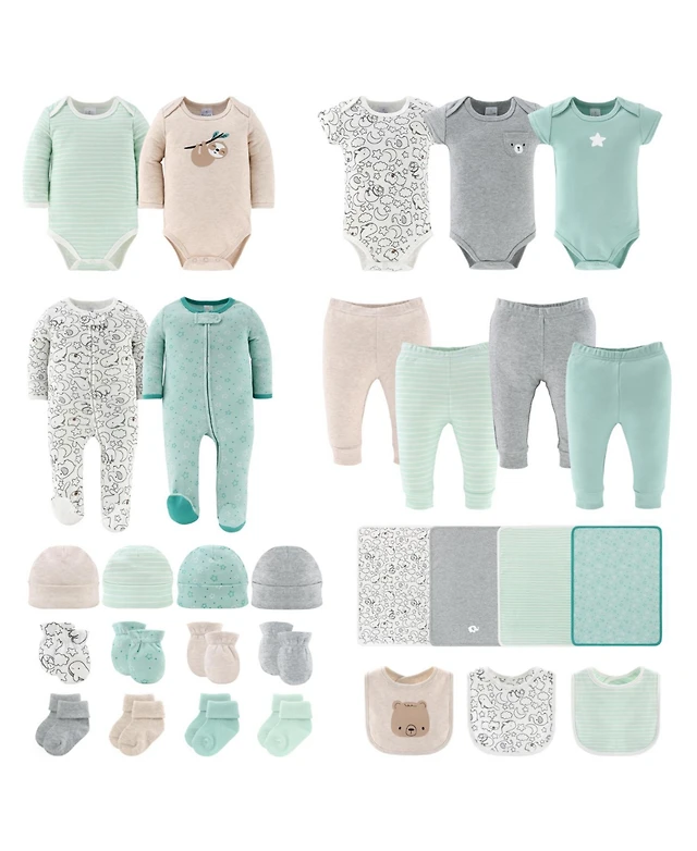 The Peanutshell Restful Basics Newborn Layette Set for Baby Boys and Girls, 30-Pieces, Green/Grey