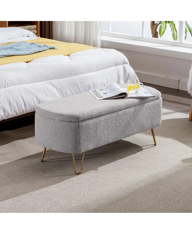Modern Faux Fur Upholstered Storage Ottoman Bench with Metal Legs, Padded Seat for Entryway, Bedroom, or Hallway-The Pop Home