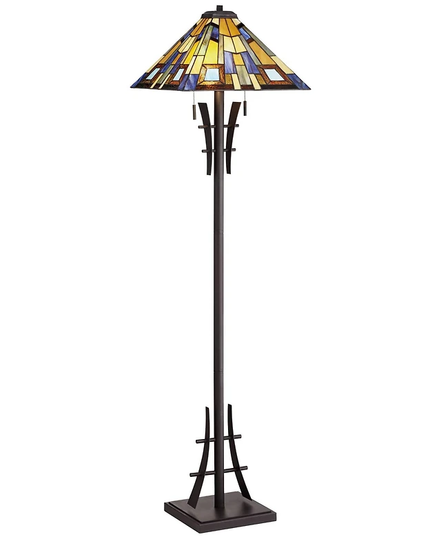 Robert Louis Tiffany Rustic Mission Asian Floor Lamp 62" Tall Bronze Iron Jewel Tone Stained Art Glass Shade for Living Room Bedroom Office House