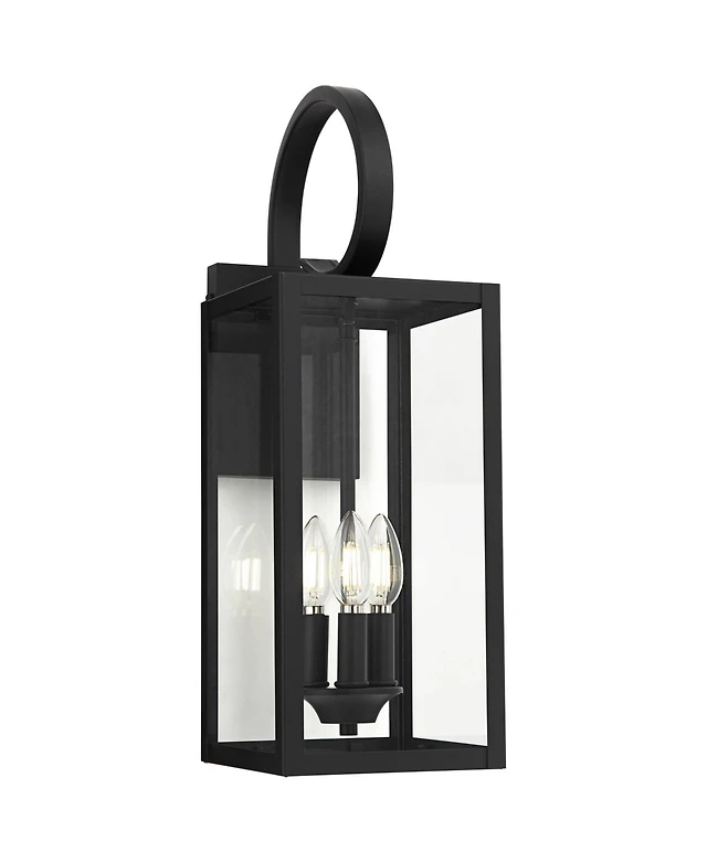 John Timberland Bellis Verde Modern Outdoor Wall Light Fixtures Set of 2 Textured Black Lantern Frame 15 1/4" Clear Glass for Post Exterior