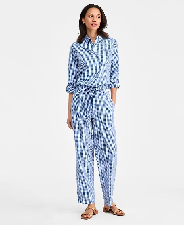 Tommy Hilfiger Women's Gingham Belted Tapered Pants