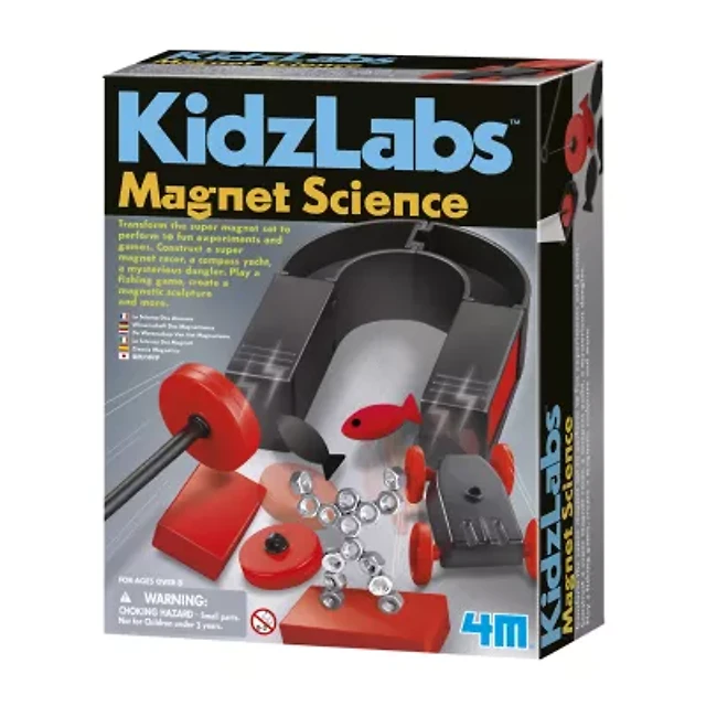 Toysmith 4m Magnet Science Kit - 10 Magnetic Experiments & Games (Over 25 Pieces To Build & Stem Learn From) - Power The Racer With A Magnet; Levitate A Magnet; Magnetic Yacht & Fishing; Boys & Girls; Age 8+ Discovery Toy
