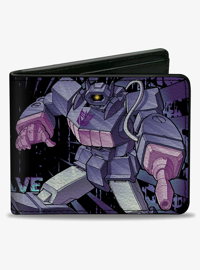 Transformers Shockwave Poses and Decepticon Shield Purples Bifold Wallet