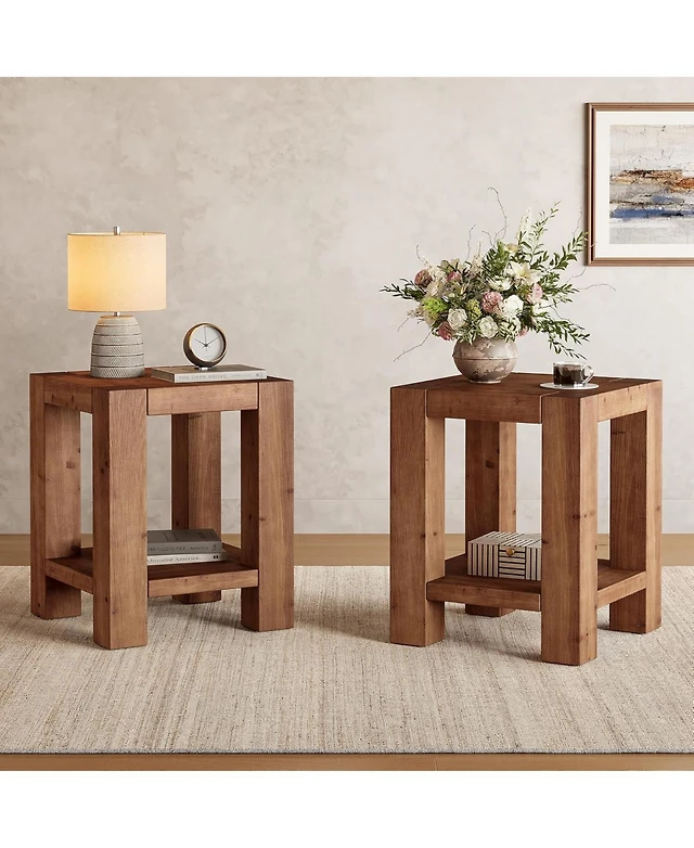 Tribesigns Solid Wood End Table Set of 2, Farmhouse Side Table with 2-Tier Storage Shelf, Rectangle Bedside Tables Accent Nightstand