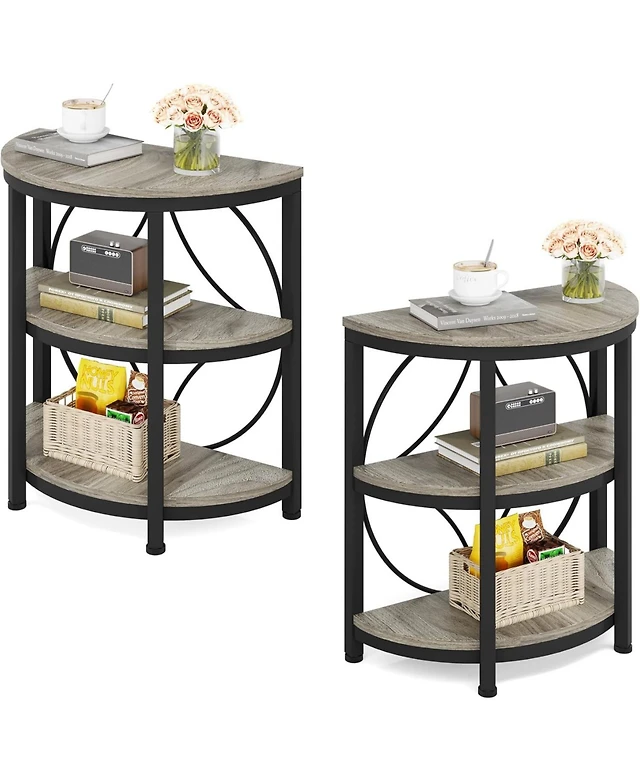 Tribesigns End Table Set of 2, 3-Tier Narrow Sofa Side Table with Storage for Living Room, Wood End Table with Geometric Metal Frame, Industrial Night