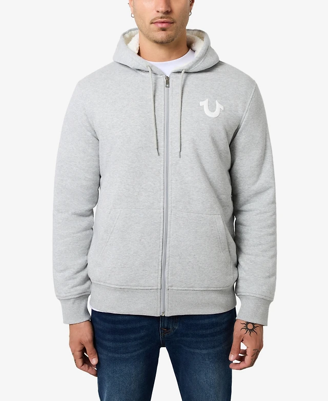 True Religion Women's Metallic Buddha Banner Zip Up Hoodie