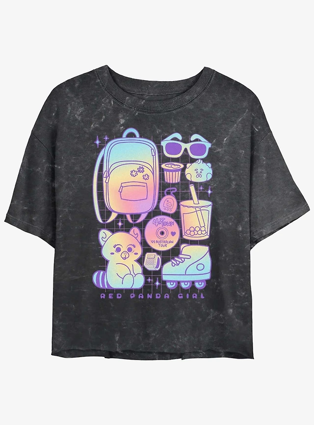 Turning Red Meilin Panda Grid Mineral Wash Womens Crop T-Shirt