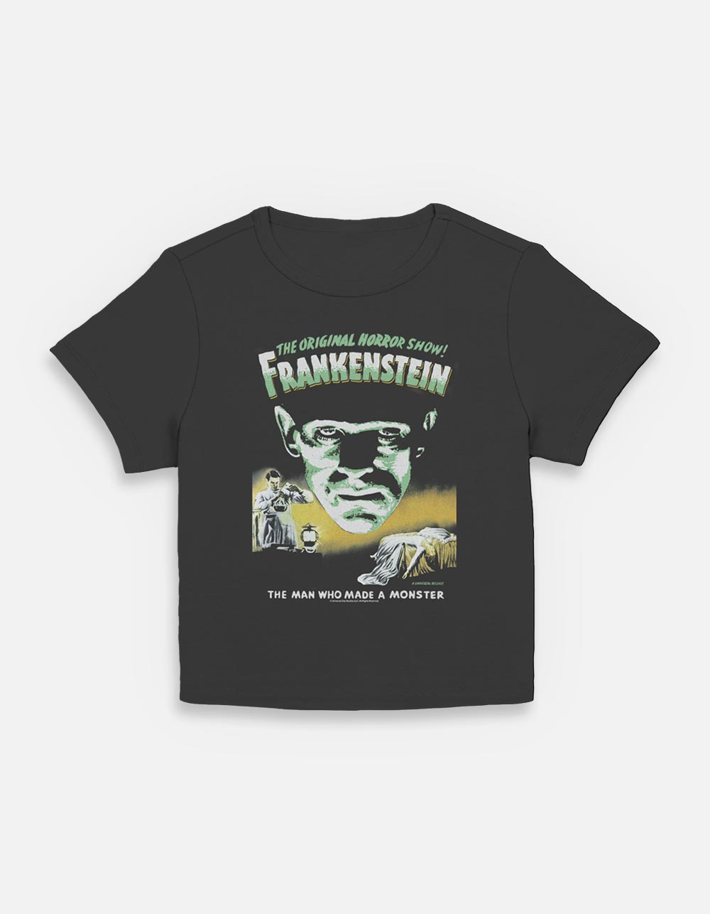 UNIVERSAL MONSTERS Frankenstein Original Womens Baby Tee - BLACK