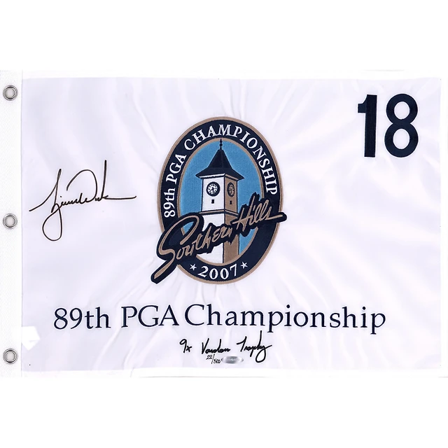 Tiger Woods Autographed 2007 PGA Championship Pin Flag with Embroidered Stats - Upper Deck