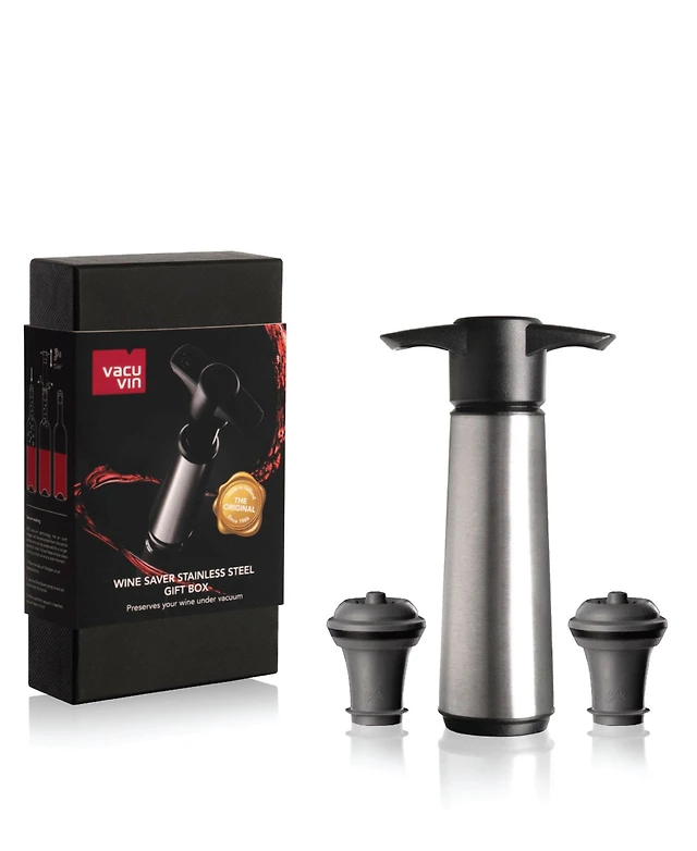 Vacu Vin Stainless Steel Wine Saver Pump with 2 Stoppers