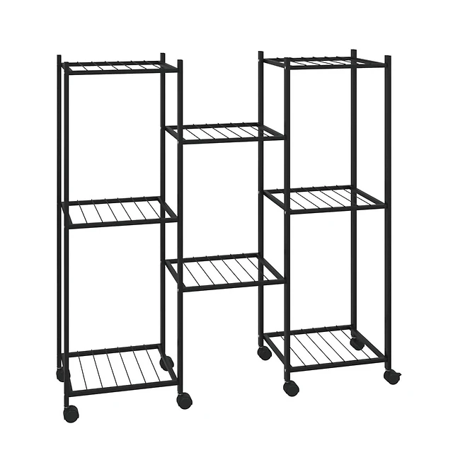 Flower Stand Black Iron Multiple Pot Holder Rollable