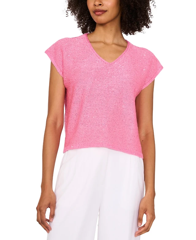 Vince Camuto Women's V-Neck Short-Sleeve Pullover Top