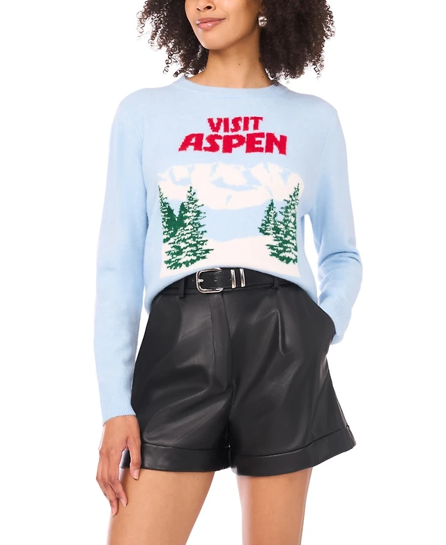 Vince Camuto Womens Cozy Crewneck Star Print Dropped Shoulder Sweater
