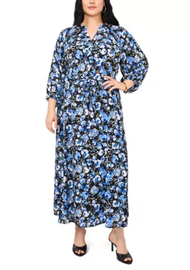 Petite V Neck 3/4 Sleeve Maxi Dress with Belt