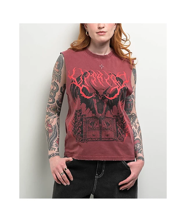 Vitriol Scarlet Black Shrug Crop Tank Top Set