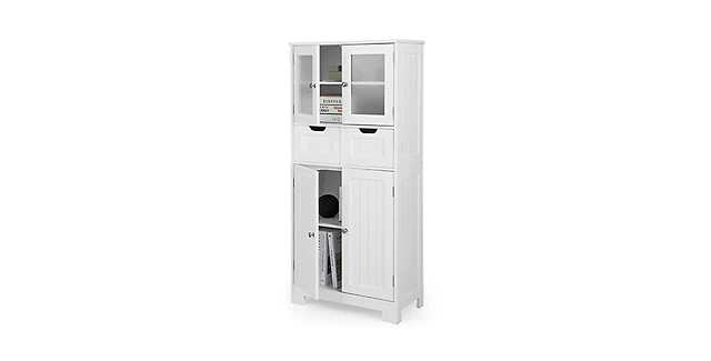 Tall Bathroom Floor Cabinet with Shutter Doors and Adjustable Shelf