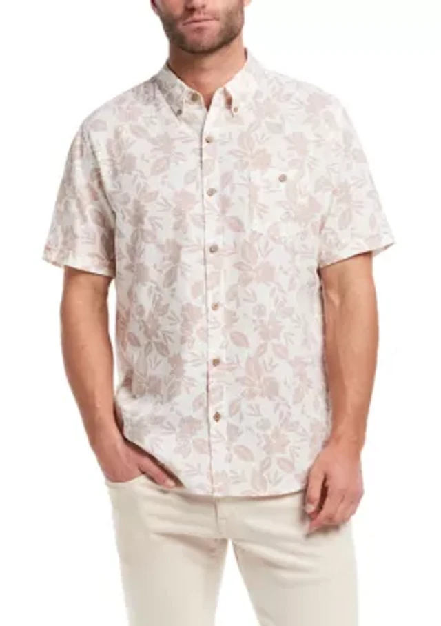 Classic Fit Short Sleeve Linen Blend Dobby Button Up Shirt
